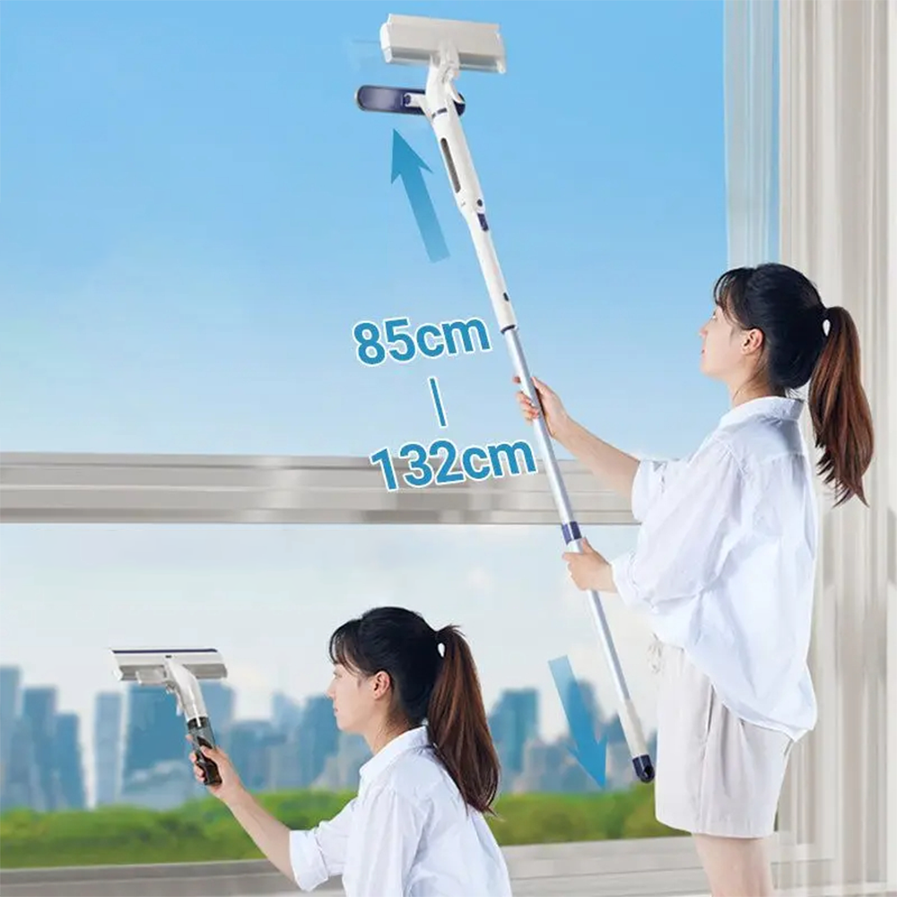 Puhdista ikkunat helposti, nopeasti ja tehokkaasti tällä teleskooppisella 3-in-1-ikkunanpesimellä. Sen ulosvedettävän varren, integroidun suihkuttimen ja sisäänrakennetun vesisäiliön ansiosta se on täydellinen työkalu korkeiden ulko- ja vaikeapääsyisten ikkunoiden puhdistukseen!